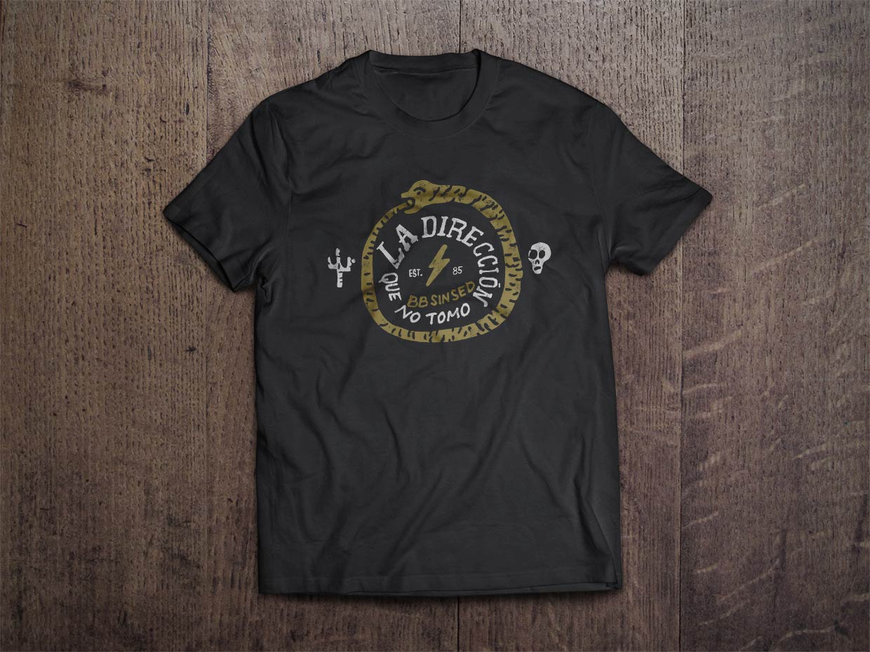 Camiseta negra manga corta unisex – La dirección que no tomo – BB SIN SED – EST.85